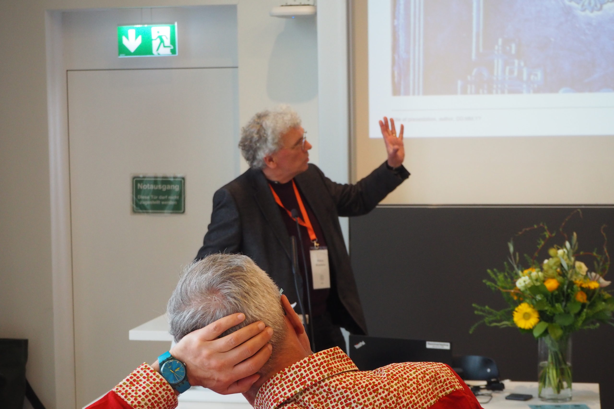 Der darauffolgende zweite Beitrag war als akademisches Gespräch zum interkulturellen bzw. missionshistorischen Konzept der »there-centricity« konzipiert. Im Zentrum steht dabei ein Perspektivenwechsel in der Rekonstruktion von Missionsgeschichte, der die Akteur:innen des Globalen Südens in den Fokus rückt. Ausgangspunkt dieses Ansatzes ist die Arbeit von Paul Jenkins (Universität Basel), Afrikahistoriker und ehemaliger Leiter des Archivs der Basler Mission, der als Genius des Konzeptes eine erste Veröffentlichung dazu im Jahre 2015 vorgelegt hatte. Später nahm Andreas Heuser den konzeptionellen Faden auf und verhielt sich dazu in zwei eigenen Veröffentlichungen von 2016 und 2024. Moritz Fischer (ehem. FIT Hermannsburg) schaltete sich nun in dem von ihm verantworteten Konferenzbeitrag in diesen bisher schriftlich verlaufenden Dialog Jenkins-Heuser als Diskutant mündlich ein. Zusammen mit Veit Arlt (Zentrum für Afrikastudien an der Universität Basel), der den erkrankten Paul Jenkins vertrat, erläuterte er die Entstehungsgeschichte von »there-centricity« in Jenkins’ biographischem Kontext (Ghana der 1960er-70er Jahre). Hier wurde nun Heuser selbst eingeladen, sich anhand von drei Fragen in die Debatte einzuschalten, in welche schliesslich das Auditorium einbezogen wurde.